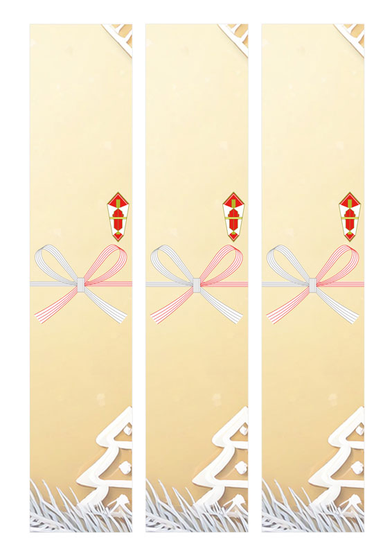 ゴールド背景に白いツリーオーナメントを描いた、上品で温かみのあるクリスマス短冊熨斗紙です。やさしい輝きをまとわせて、ちょっとだけ大人デザインも意識してみました。クリスマス色はそこまで強くないので、季節の贈り物にも使いやすいと思います。