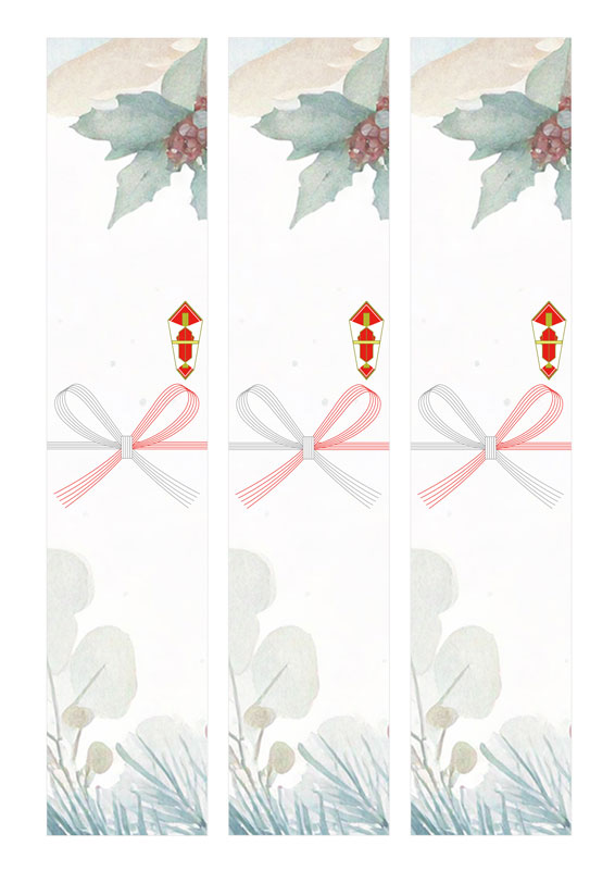 水彩のヒイラギとモミが広がる落ち着いたクリスマスの短冊熨斗紙