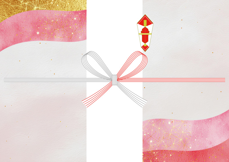 和紙背景にピンクとゴールドの配色、さらにちょこっと和柄を混ぜた、和風可愛い系のお歳暮のし紙テンプレートです。豪華さと落ち着き感、でも可愛い感も同居してて、いい感じに仕上がりました。クセもないデザインなので幅広い年代にもOK!カジュアルな関係からビジネス、目上の方などなど。様々なシーンで使える便利可愛い系のデザインです。