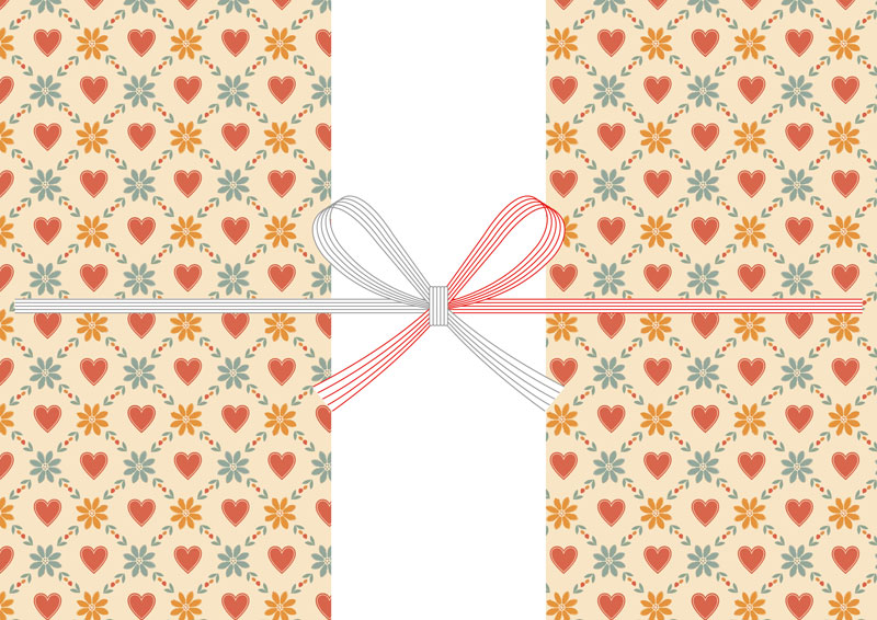 レトロな配色の総柄パターンが懐かしくて可愛い、バレンタインデーの無料のし紙テンプレートです。ヴィンテージ感や落ち着き感もあるので、懐かし駄菓子セットやお酒を包んだりするのにも良さそうですね!ちょっと変わったバレンタインを演出したい場合にどうぞ。