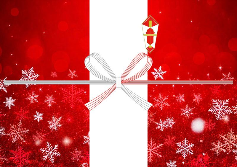 赤い背景に雪の結晶を散りばめた、華やかでクリスマスらしい、のし紙のテンプレートです。明るい赤の中に白の結晶が映えるように仕上げて、お祝いムードをしっかり出してみました。にぎやかすぎず、ギフト包装にも使いやすい雰囲気。家庭や店舗のプレゼント包装にもどうぞ。