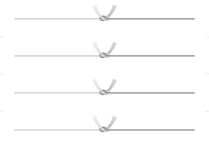 白黒あわじ結び 7本結びの巻き熨斗です。小物やちょっとした品にクルッと巻けて便利ですね!通夜・葬儀・告別式・法要など弔事全般で用いられる代表的な配色で、蓮を描かないため宗派を問わず使用できます。7本結びは5本結びよりも格式が高く、より丁寧な弔意を示す際に用いられます。A3・A4サイズを用意しており、WordやExcel形式で文字入れや印刷も容易に行えます。